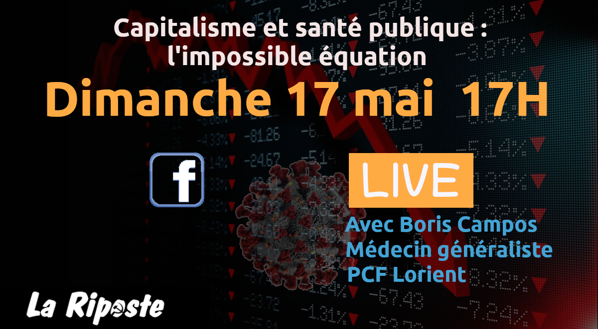 La pandémie du coronavirus a mis à l’épreuve un système sanitaire asphyxié par des années d’austérité. Naviguant à vue, le gouvernement a pris des décisions contraires aux enjeux de santé publique. Faute de moyens humains et matériels pour briser les chaînes de transmission, la vague épidémique n’a été évitée sur l’ensemble du territoire qu’au prix d’un confinement aux conséquences dévastatrices pour l’économie. Le personnel soignant, en sous-effectif chronique, a dû travailler dans le dénuement le plus total. Dans l’actuelle période de transition, la capacité de dépistage va être déterminante pour éviter une seconde vague. Le dispositif de traçage des cas-contact mis en place par le gouvernement pose de sérieux problèmes éthiques puisqu’il s’attaque au secret médical. Le malheur des uns faisant le bonheur des autres, les laboratoires pharmaceutiques se sont lancés dans une course effrénée pour être le premier à mettre sur le marché une molécule à la rentabilité assurée. La profonde récession qui s’annonce creusera les inégalités sociales de santé. Le programme historique des communistes permettrait-il de lutter contre la pandémie ? Nous aborderons ces thèmes et d’autres avec Boris Campos, médecin généraliste et militant communiste à Lorient, qui répondra à vos questions en live.