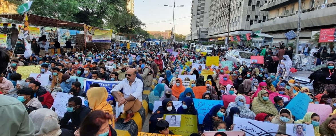 Initialement, la police a interdit le sit-in devant le Club national de la presse, à Islamabad, mais les manifestants, dirigés par une femme médecin, Mahrang Baloch, ont finalement réussi à le faire. La protestation s’est poursuivie jusqu’au 23 décembre. La dirigeante du mouvement, le Dr Baloch, a appelé à un rassemblement de masse, pour le 27 décembre, à Quetta. Le jour du rassemblement, des centaines de milliers de personnes sont descendues dans la rue pour protester contre les disparitions forcées.